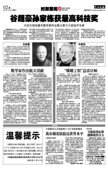 谷超豪孙家栋获最高科技奖
