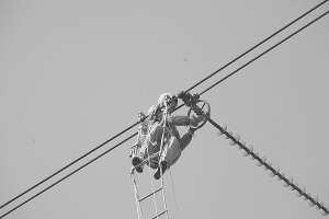为应对电煤短缺造成的电力供应紧张局面,按照省委、省政府开展“情暖中原、度冬保电”百日会战活动的部署,1月14日,周口供电公司为220千伏邵淮线路进行了带电维护检修。此次高电压带电作业,既减少了停电时间,又确保了全市生产生活用电。魏树林 摄