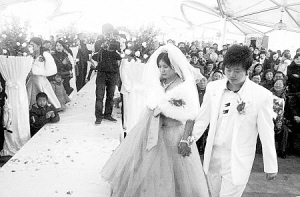 “让我们共同见证这一美丽的绿色婚礼”,16日中午,重庆南岸区一场婚礼上,新娘杨雪梅穿着绿色的婚纱与新郎深情相拥。举办方称,她是“全国头一个穿绿色婚纱结婚的。”据介绍,新郎与新娘在云阳县共同创办了一家中药材种植公司,经过商讨,他们决定采用最亲近自然的绿色作为婚礼的基调。重晨 摄