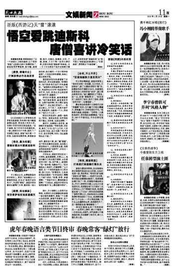 本报综合消息 沸沸扬扬炒了近一年的浙江卫视拍摄的(以下简称“浙版”)《西游记》终于粉墨登场了,该版虽网罗费振翔、陈司翰、唐国强、陈冲、刘晓庆、陈德容、刘孜、于娜、韩雪、王力可等一系列大牌明星,但依旧难逃“挨板砖”的命运。自1月3日全国各个地方台陆续开播之后,这部宣称要“超越经典”且“绝不雷人”的浙版《西游》事实上“天雷滚滚”,雷得观众“外焦里嫩”。