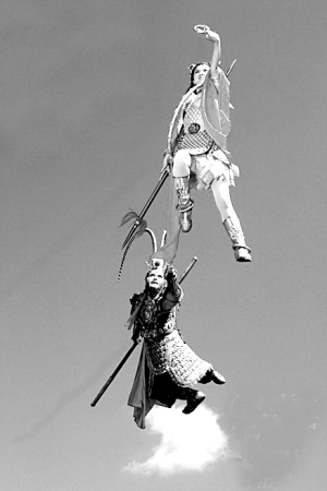 孙悟空不仅仅跟牛魔王等妖怪结拜了兄弟,还交上了青蛟魔王和白鹏魔王两个美女妖怪,孙悟空还跟白鹏暗生情愫,两个妖怪在水帘洞前谈谈情,聊聊天,好不自在。