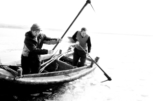 17日,山东省乳山市的海参养殖户破冰抗灾自救。持续的寒潮降温天气使位于黄海之滨的乳山市3万余亩近海海参养殖池较长时间冰冻受灾。海参养殖户们想方设法,通过“耕”海“锄”冰、小量破冰的方式抗灾保养殖。新华社发