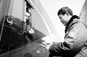 2010年春运将于1月30日开始,昨天川汇区运管所执法人员提前进入春运状态,对客运中心站、川汇区汽车站客车运输进行安全排查,以保证广大旅客安全、快捷、有序出行。晚报记者 朱海龙 摄