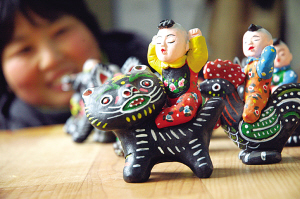 “草帽老虎”是淮阳“泥泥狗”中最古老的传统造型之一,当地民间艺人在继承传统的基础上,不断创新丰富内容。昨天,淮阳县民间泥塑艺人展示其捏制的虎年生肖娃娃泥塑作品,造型古拙,形象生动,惹人喜爱。