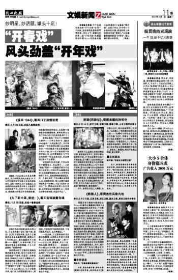 本报综合消息 今年各地电视台的“开年大戏”如同一个闷炮,还没来得及放响便草草收场。相比之下,接踵而至的第二波“开春大戏”反倒显得动作颇大——无论是央视正在热播的王宝强版“董存瑞”,还是王学兵、孙宁两口子合演的抗日剧,或是即将上映的周杰伦版“熊猫人”以及戴着美瞳的浙版“孙悟空”,都已赚尽观众的眼球。(章炎)