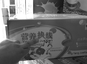 本报讯 本以为是知名饮料“营养快线”,但仔细察看发现竟是“营养抉线”(如图)。近日,在扶沟县吕潭乡某食品经营店,该县工商执法人员查封了一批傍名牌饮料。