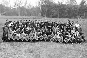 为了拍摄“中国最牛全家福”,彭熊氏家族100多人齐聚双流县福田村一组。1月31日下午4时许,在10多位摄影师的参与下,众人在路边的麦田拍摄了全家福。(成晚)
