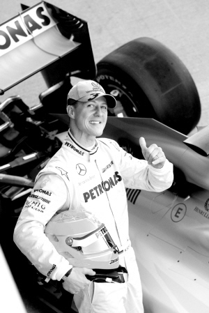 尽管一身白衣的舒马赫让不少车迷都感觉陌生,但抢眼的成绩,让人看到了那个熟悉的七冠王。雄风犹在的背后,是艰难的复出过程。舒马赫透露,最难熬的是“减肥关”。据悉,复出前舒马赫的体重接近80公斤,而目前已经降到74公斤。