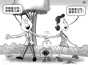 国内各大知名网站上,近期类似“过年到底该回谁家”的帖子,跟帖总是异常火爆,讨论得最为热烈。某网站对新生代“双独家庭”回谁家过年进行调查,600多名调查者中,有过半的人曾为此事和伴侣争吵或有过不愉快。而在“你有什么好的办法解决这个难题”的问题中,有35%的人“选择一年去他家,一年去她家”,选择第二多的是“过年时,两头跑”。