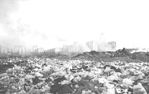 据有关部门统计,中国每年产生垃圾近1.6亿吨,城市人均垃圾年产量440公斤,且以每年超过10%的速度增长,其中能够进行无害化处理的占66%,近1/3垃圾只能进行简单填埋,全国600座城市已堆放或填埋各类垃圾80亿吨,垃圾堆存累计侵占土地5亿平方米,有2/3城市被垃圾群包围。