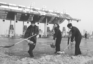 昨日,商周高速公路工作人员在出站口清理积雪,为过往车辆通行提供方便。 记者 李寒 摄
