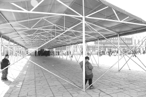 春运客流高峰来临,昨日,记者在周口火车站前广场看到,临时候车大厅已搭建完毕,并投入使用。再有雨雪来临,出行旅客不用受苦了。