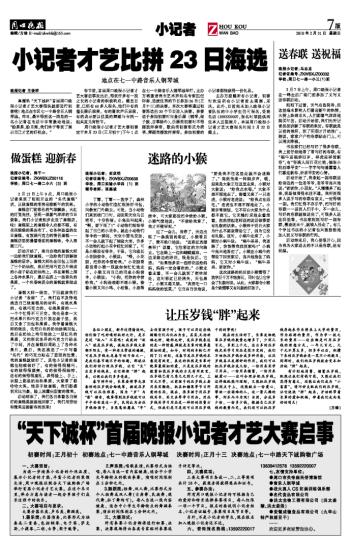 “天下诚杯”首届晚报小记者才艺大赛启事