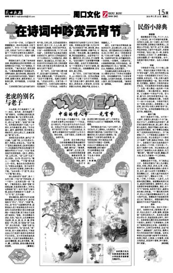 牛去虎来,今年是庚寅年了。按十二地支,寅为虎,虎自然就得了“寅”的雅号。南朝陶弘景所著《真诰·翼真捡》载:“有云寅兽白齿者,是虎牙也。……亦云寅客。”此处可见,虎已有“寅兽”、“寅客”两个雅号。东晋葛洪的《抱朴子》说:“山中寅日,有自称虞吏者,虎也。”自古有虞人、虞官、虞卿等职,均为管理山泽的官员。虎为山兽之王,故虞吏便成了管“虎”之官。