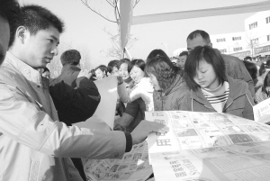 2月21日上午,扶沟县供电部门工作人员在向返乡农民工发放农村安全用电宣传画。