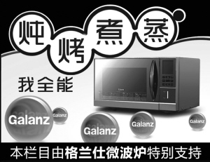 刚恋爱的同事程怡租住在一室一厅的房子,卧室、客厅、厨房“三合一”,明火烹饪油烟大不说,锅灶都没地方摆,具备了单一功能微波炉、电烤箱、电蒸炉、电饭煲、电火锅、消毒柜等多种小家电功能的全能型光波微波炉就成了房间唯一能“下厨”的工具。今年元宵节,她就用这台格兰仕“中国红”全能微波炉为这个传统的节日增添了一份浓情蜜意。