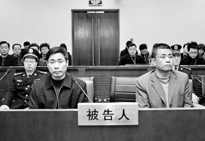 3月1日,被告人阙敬德(右)、张志琴在法庭上。3月1日上午,上海市第一中级人民法院开庭审理上海“倒楼案”两名主要责任人阙敬德、张志琴。公诉人在法庭上指控两人在发生倒楼事故的梅都公司改制过程中贪污4000余万元;此外,张志琴涉嫌挪用资金4.4亿元,并在倒楼事故中犯有重大责任事故罪。新华社发