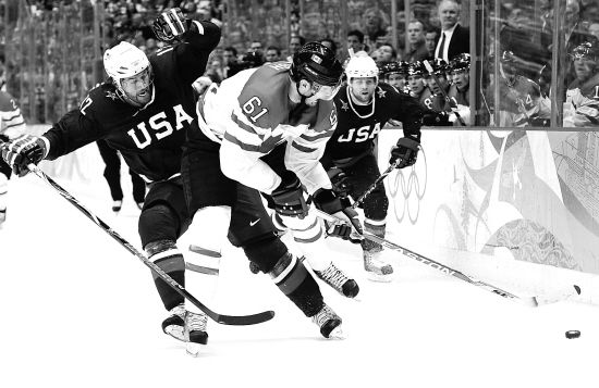 加拿大冰球队(右)昨日力克强敌美国队,为东道主完美收官