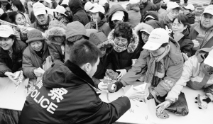 3月1日,北京市民上交烟花爆竹换取礼品。当日,北京市政府烟花办启动为期3天的烟花爆竹回收活动,市民只要上交未燃放的烟花爆竹,就能获得一份礼品。新华社发