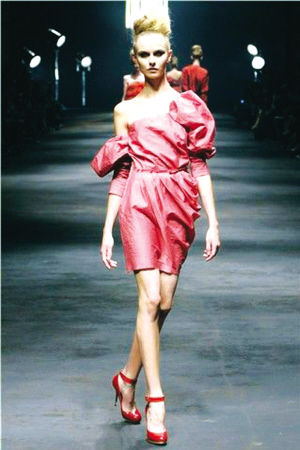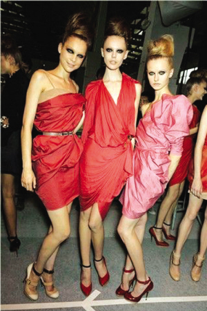 2009 秋冬的趋势是摇滚硬朗,2010 春夏的趋势是轻薄柔美,红色高跟鞋把这两者踩在脚下,成为过渡季节的最好选择。(时尚网 )