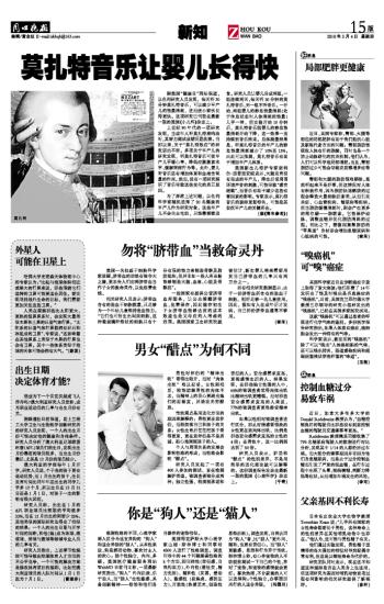 美国得克萨斯大学心理学家山姆·斯林博士和同事对4500人进行了性格调查。调查问卷中的44个问题涵盖性格的5个方面,即自律性(责任感、自我约束力)、外向性(爱社交,精力充沛)、随和性(友善,爱助人)、敏感性(易焦虑、感到压力)、开放性(热爱艺术,创造性思维活跃)。调查发现,自我认同为“狗人”者,比“猫人”更外向、随和,也更有责任心。而“猫人”更敏感,思想和行为异于传统。斯林博士称,有心养宠物的人不妨提前测试一下自己的个性,养对了宠物,和宠物的感情就会更好。喜欢热闹,不甘寂寞的人可以选择狗;个性独立,办事雷厉风行的人适合养猫。 (冯国川)