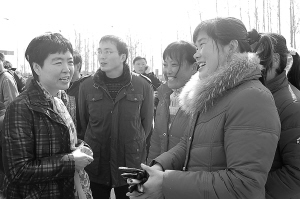 日前,扶沟县21家职能服务部门共同组织了大型返乡农民工招聘会,扶沟县工业园区内20多家企业为返乡农民工提供就业岗位6000多个。图为县领导听取大家所反映的困难和对返乡农民工再就业工作的意见。