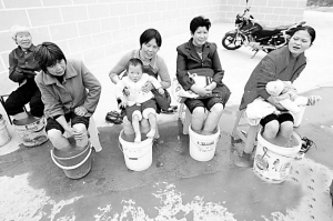 3日,重庆北培区素心村,该地区的温泉被开发后吸引当地村民前来洗脚足疗。当地村民看到这一商机,买来板凳出租给前来洗脚的市民,洗一次2元钱。
