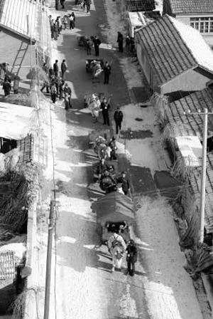杜家为这10挂牛车做了充分准备,每头牛头上戴着大红花,身上戴着气球,牛车上盖着红布。