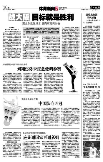 虽然对手实力很强大,建业队员却认为这种比赛很合自己的“胃口”,“第一场打得很别扭,对方所有球员几乎退守半场,怎么攻也攻不进去。大阪主场作战,实力也很强,他们肯定想在我们身上拿分,我们没有什么包袱,如果能够做好防守,等对方一急躁,说不定就有机会”。