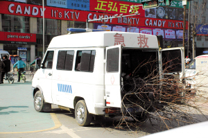 昨日10时许,在周口市区八一路,一辆拉着几棵树苗、不时响几声警报、疾驶而过的车牌号为“豫 PN1266”的救护车,引起了市民的注意。由于该车车身上的标志和相关医院的不同,市交警支队一大队民警经查证,发现这是一辆自制的山寨版“救护车”。目前,该“救护车”已被交警队暂时扣押。
