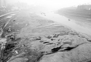 10日,长江重庆段河滩裸露,当地从3月5日至4月30日对猪儿碛水域航道限航进行疏浚。据悉,去年入秋以来,西南大部地区持续干旱。贵州省的干旱范围和强度突破了气象历史极值,348万人发生临时饮水困难。云南省则有742万人饮水困难。据农业部统计,截至3月5日,云南、广西、贵州、四川、重庆秋冬播作物受旱面积6130.6万亩。西南五省(区、市)粮食产量占全国的16%,其粮食生产形势直接影响全国粮食生产大局。新华社发
