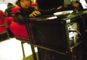3月14日和15日,记者暗访了周口市区的紫雨绿色网吧、紫藤网吧和金博网吧。14日15时许,记者首先来到交通路上的紫雨绿色网吧。尽管网吧门口醒目位置悬挂着写有“禁止未成年人进入”和“文化局12318举报电话”字样的牌子,但记者仍发现有不少小学生模样的孩子进进出出,而网吧工作人员对那些孩子毫无阻止,均是笑脸相迎。记者在屋内转了一圈,看到大约有10名孩子正在兴致勃勃地玩游戏(图1),有的孩子还背着书包。不仅如此,在该网吧的玻璃门旁,还放着两台老虎机(图2)。