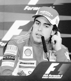 3月14日,法拉利车队车手阿隆索在新闻发布会上。当日,在2010年世界一级方程式赛车(F1)巴林大奖赛中,阿隆索以1小时39分20秒396的成绩夺得冠军。