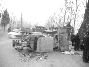 其中一位伤势较轻者告诉记者,该车是胡集乡史王庄行政村的,3月17日是淮阳庙会,车主史某便组织周边几个村的村民“拼车”赶庙会,核载3人的四轮车居然挤了30余人。当天早上7时,该车路过郸城县与淮阳县交界处的交警卡点时,交警就设法阻拦,但该车强行闯卡通过。下午17时,该车再次行至该卡点时,车主史某知道有交警值勤便加速行驶,值勤交警没有上前阻拦,但用高音喇叭提醒安全。驶过卡点两公里后,车主史某唯恐交警从后面追来,再一次提高车速。结果,为了躲避路面的坑洼处,该车侧翻,车上30余人全部被掀翻在地。