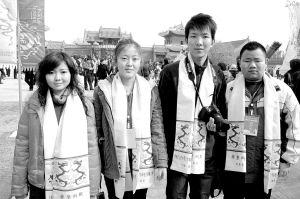昨日上午,荣获2009年度“感动中国”特别奖的长江大学学生贾云芸、孔璇、李立科、徐斌程来到太昊陵祭祖大典现场,感受中原灿烂文化。