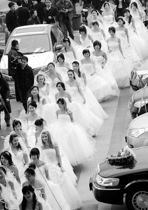 3月20日,30多位“世博新娘”来到南京婚博会现场。世博会期间,2010对“世博新人”将在法国馆举行“世博婚典”。 新华社发