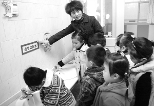 昨日是第十八届“世界水日”,我市某幼儿园开展“节约用水 从我做起”主题活动,从小培养孩子们的节水意识。晚报记者 李寒 摄