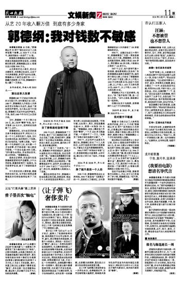 这还不包括德云华服、郭家菜等方面的收入。不过,对于自己究竟挣了多少钱,郭德纲总说:“别问我,我对数字不敏感。”(邵景)