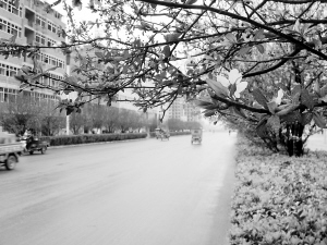 3月23日,记者在郸城县城各条道路上都能欣赏百花争艳的美景。该县建设部门按照“一路一景”规划栽种的行道树,有的花开遍枝、芳香四溢,有的芽苞初露、绿意盎然。晚报记者 徐松 摄