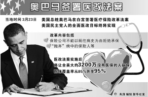 美国医改议案21日分两个版本在众议院获得通过,其中参议院版本的法案23日经奥巴马签字,成为法律。