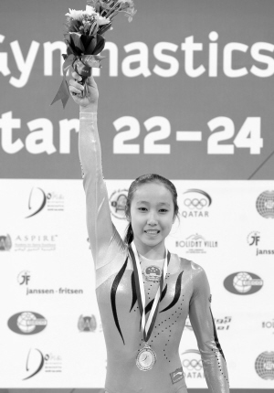当地时间3月23日,中国选手黄秋爽在颁奖仪式上。当日,在多哈进行的国际体操联合会世界杯卡塔尔站的高低杠决赛中,黄秋爽以15.025分的成绩获得金牌。
