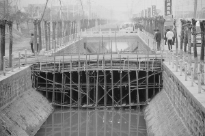 昨天上午,记者来到交通东路,见几名工人正在施工建桥(如图)。记者从工人口中得知,正建的这座桥属于一家房地产公司。记者现场目测了一下,该桥约有8米长、10米宽,用混凝土浇筑而成。工人告诉记者,该桥东侧紧挨着的另外两座桥也是该房地产公司建的,目的是“格林绿色港湾”小区建成后方便业主出入。记者看到,这3座桥距离很近。“其实同一个小区没必要紧挨着建这么多桥,一座桥就已经很方便了。”一工人向记者表述了自己的看法。“格林绿色港湾”负责人叶经理解释说,他们只有一座桥的审批手续,另两座桥是老桥,他们只是对老桥进行了重新修建和加宽。