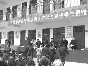 ▲3月24日,扶沟县聋哑学校的学生们领到了该县相关领导送来的学习用品。