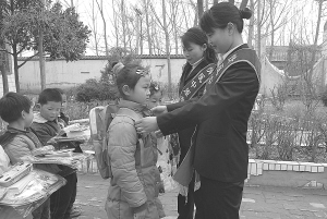 3月24日,扶沟县电力部门工作人员来到该县崔桥镇宋许小学,为留守儿童送来了书包、铅笔等文具。
