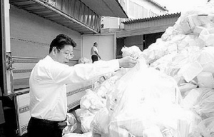 他看过有的工厂,把废旧的光盘粉碎、用硫酸清洗、晾干,其间工人们还会光着脚丫,在正在晾晒塑料碎片的地面上踩来踩去,最后这些塑料碎片竟然被制成了婴儿奶瓶。甚至,他曾经在一家用回收纸浆制造一次性纸杯的工厂发现,纸浆池里竟然有卫生巾留下的血迹。