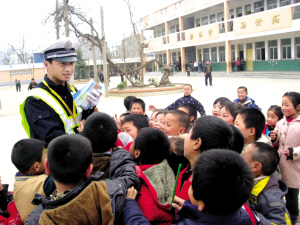 昨日是第15个“全国中小学生安全教育日”,一大早,周口市交警支队一大队和三大队的交警们走进市纺织路小学、杨脑小学等学校开展文明交通主题教育活动。他们以班级为单位,组织学生们观看交通安全宣传光碟,召开交通安全主题班会,发放文明交通提示课程表,努力提高孩子们的交通安全意识和交通文明意识。