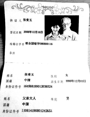 记者看到,这些所谓阴间结婚证,完全依葫芦画瓢(下图),上面登记机关、登记日期、照片、身份证号码等信息一应俱全,而对象都是一些中外明星,如“张曼玉”、“蔡依林”、“Blanne”等。结婚证上还打出联合国批准字号,并贴着各种美女大头照,且多是“90后”。