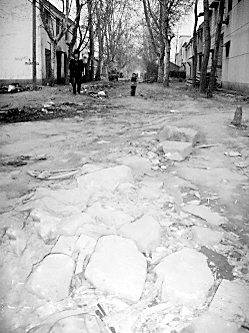 记者在现场看到,这条街长约1000米,路面由大小不一的石块、砖碴铺成,部分路面还是居民们用垃圾垫的,高低不平。