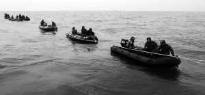 韩国海军着手在出事海域展开有史以来最大规模搜救行动,救援直升机在空中盘旋,海军海难救助队队员乘橡皮艇来回穿梭,仿佛一场大型作战。