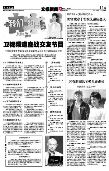 本报综合消息 当今最火的电视节目,莫过于相亲交友,其中最火的是江苏卫视的《非诚勿扰》,上周日收视率再次刷新纪录达到2.82%。此外,湖南卫视《我们约会吧》和山东卫视《爱情来敲门》也在这股交友节目热中贡献着力量。(刘霆)